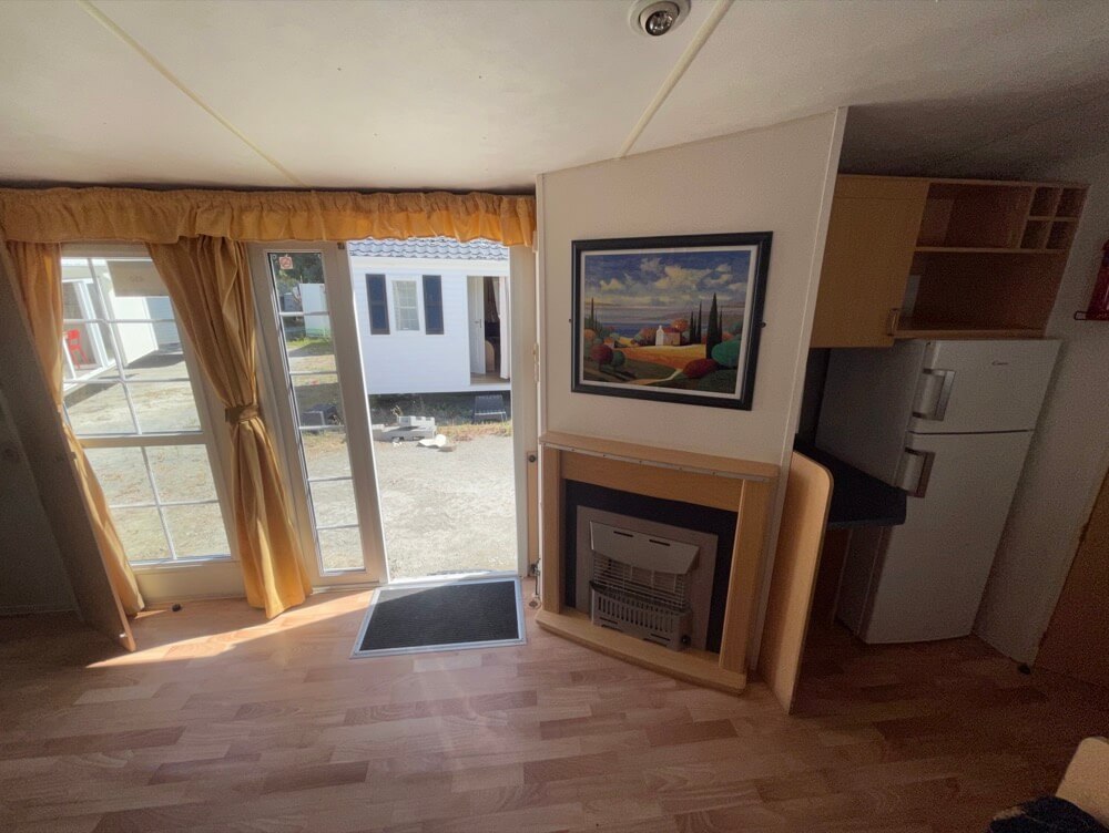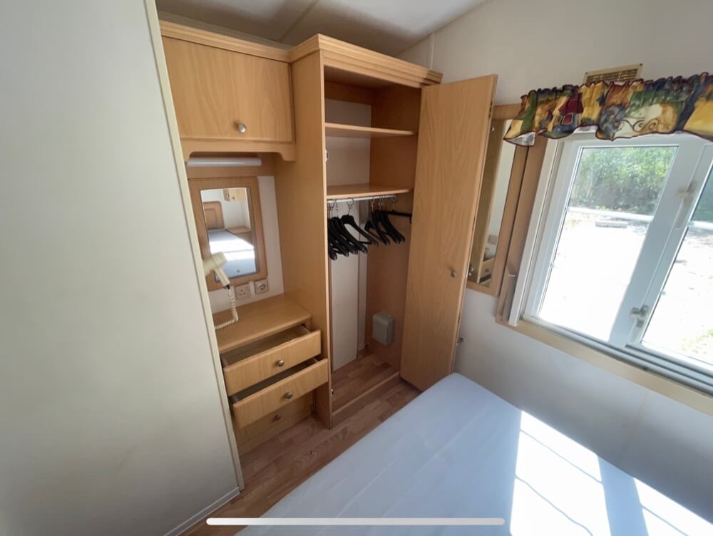 DIMENSÕES Comprimento x Largura: 8,6×3,8 m ESTRUTURA Número de quartos: 3 quartos Número de WC/chuveiros: 1 WC, 1 chuveiro Revestimento: 2- PVC Isolamento: 4 estações EQUIPAMENTOS Aquecimento a gás Escaldador a gás Forno Placa de cozinha a gás PANORÂMICAS Sala de estar central