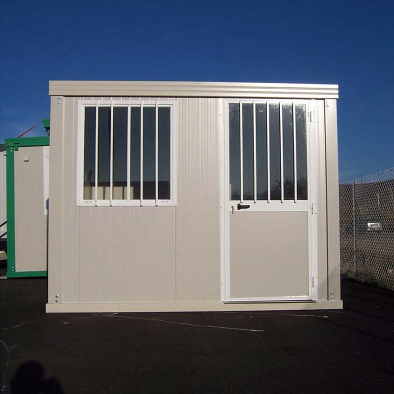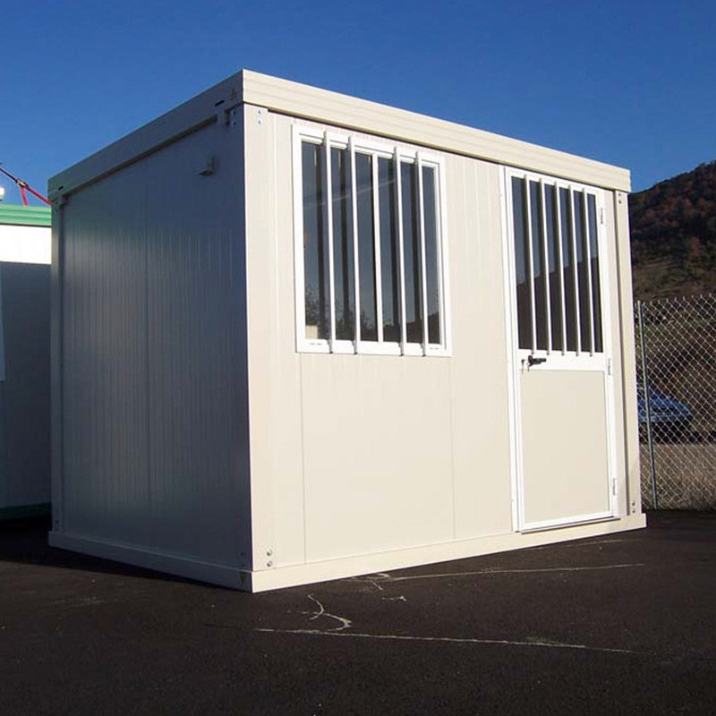 Altura exterior: 241 cm Altura interior: 220 cm Comprimento: 309, 409, 509 ou 609 cm Largura: 242 cm Caixilharia de alumínio lacado branco (RAL 9010) O bungalow padrão AS4 está equipado com uma porta semi-envidraçada (dimensões 104 x 220 cm, abertura de 90 cm) com grades e vidro simples transparente, e uma janela de correr (dimensões 104 x 110 cm) com grades e vidro simples transparente. O lavabo está equipado com uma porta interior maciça (dimensões 78 x 210 cm, abertura de 64 cm) e uma claraboia de 58 x 58 cm com vidro simples moldado com 4 mm de espessura. Aparelhos Sanitários Conectáveis O lavabo inclui um lavatório em PVC de 36 cm com torneira e espelho. Inclui também uma sanita suspensa em cerâmica com caixa acoplada de PVC e suporte para papel higiénico. O abastecimento de água é feito na parede (A), com um redutor de pressão (R), e o esgoto está ligado a uma saída de parede única (E). Instalação elétrica de 220V O bungalow standard AS4 está equipado na sala principal com um interruptor de luz, uma lâmpada LED para os tamanhos de 3,09m e 4,09m, duas lâmpadas LED para os tamanhos de 5,09m e 6,09m, duas tomadas elétricas, um aquecedor de convecção de 1500 watts, um quadro elétrico incluindo um dispositivo de corrente residual (DR) e disjuntores (máximo de 6 kW) e uma caixa de derivação exterior. A casa de banho possui um interruptor e uma luminária de teto LED de 7,5 watts. ESTRUTURA Material: Aço galvanizado e lacado Cor: Cinza RAL 9002 Espessura: 1,5 mm Base: Altura 95 mm Teto: Altura 150 mm Manuseamento: 4 pontos de elevação no teto para ganchos de elevação ESQUADRIAS Material: Alumínio lacado branco RAL 9010 Porta(s): 1 porta semi-envidraçada, dimensões 104 x 220 cm, com grades, vidro simples + 1 porta interior maciça, dimensões 78 x 210 cm (abertura de 64 cm) Janela(s): 1 janela de correr, dimensões 104 x 110 cm, com grades, vidro simples + 1 clarabóia, dimensões 58 x 58 cm, vidro simples moldado de 4 mm PAREDES, DIVISÓRIAS E TECTO Material: Painéis sanduíche Isolamento: Espuma rígida de poliuretano Espessura das paredes e divisórias: Espessura do telhado: 40 mm Espessura da cobertura: 30 mm Revestimento: Chapa de aço galvanizado, padrão grego Cor da parede: Cinza claro RAL 9002 PISO Estrutura: Painéis de aglomerado resistentes à água Espessura: 18 mm Revestimento: PVC INSTALAÇÕES SANITÁRIAS Lavatório em PVC de 36 cm com torneira de água fria e espelho Sanita em cerâmica com caixa acoplada em PVC e suporte para papel higiénico Entrada de água na parede (A) e tubagem de esgoto ligada a uma saída única (E) INSTALAÇÕES ELÉTRICAS Iluminação: 2 interruptores + 1 ou 2 lâmpadas fluorescentes LED + 1 luminária de teto LED de 7,5 W Tomadas: 2 tomadas Aquecimento: 1 aquecedor convector de 1500 W Painel: 1 painel incluindo dispositivo de corrente residual e disjuntores Ligação: 1 caixa de derivação externa
