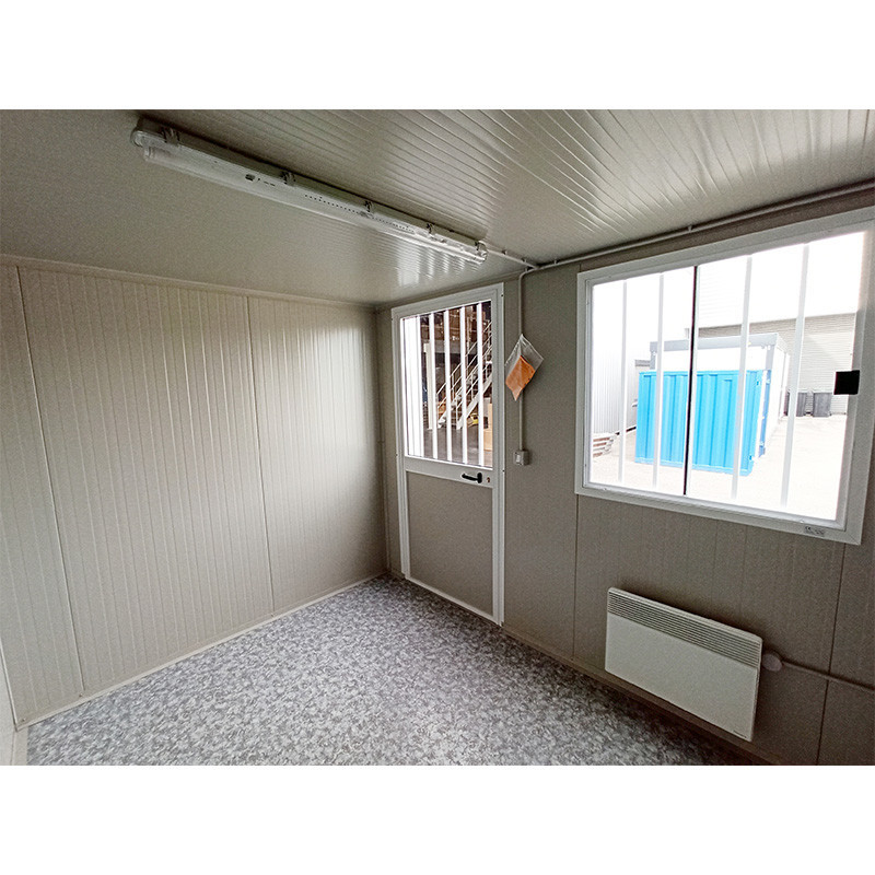 Embora o seu principal propósito seja o conforto dos funcionários (escritórios, refeitórios, vestiários, etc.), os bungalows de obra são também adequados para muitos outros usos na indústria ou em serviços (oficinas, depósitos, etc.). Estes módulos de obra oferecem uma estrutura isolada, luminosa e confortável. Dimensões de um bungalow de obra padrão: Altura exterior: 241 cm Altura interior: 220 cm Comprimentos possíveis: 309, 409, 509 ou 609 cm Largura: 242 cm *Estrutura: Material: Aço galvanizado e lacado Cor: Cinza claro RAL 9002 Espessura: 1,5 mm Base: altura 95 mm / espessura 1,5 mm / cor: cinza claro RAL 9002 Cobertura: altura 150 mm / espessura: 1,5 mm / cor: cinzento claro RAL 9002 Manuseamento: 4 pontos de fixação na cobertura para ganchos de elevação *Paredes e cobertura: Material: Painéis sanduíche Isolamento: Espuma rígida de poliuretano Euroclasse: Cs3d0 Espessura das paredes: 40 mm Cor das paredes: cinza claro RAL 9002 Espessura do telhado: 30 mm Cobertura do telhado: chapa de aço galvanizado com ondulações gregas Evacuação das águas pluviais: nas laterais. Cor: cinza claro RAL 9002 *Piso: Estrutura: painéis de aglomerado de madeira hidrofugado Espessura: 18 mm Revestimento: PVC *Carpintaria: Material: alumínio lacado branco RAL 9010 Porta(s): 1 porta semi-envidraçada com dimensões de 104 x 220 cm e 90 cm de passagem, com grades, vidro simples transparente Janela(s): 1 janela deslizante com dimensões de 104 x 110 cm com grades, vidro simples transparente *Instalação elétrica: Potência: 220 V Iluminação: 1 ou 2 néons LED, dependendo das dimensões 1 interruptor Tomadas: 2 tomadas de corrente Aquecimento: 1 convector de 1500 W Quadro: 1 quadro incluindo interrupto-diferencial e disjuntores (6 KW no máximo) Ligação: 1 caixa exterior de ligação