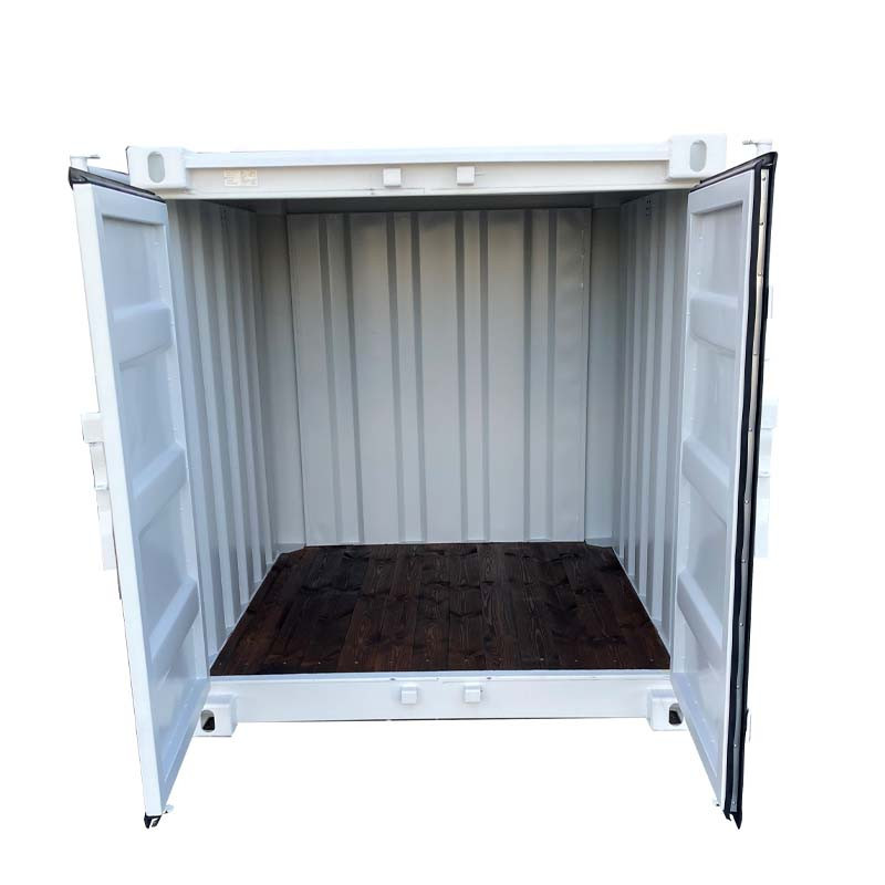 DIMENSÕES EXTERNAS Altura: 190 cm Largura: 175 cm Profundidade: 180 cm DIMENSÕES INTERNAS Altura: 167 cm Largura: 162 cm Profundidade: 160 cm Os nossos contentores de armazenamento atendem às necessidades de armazenamento em estaleiros de construção, armazéns, depósitos ao ar livre, quintas ou residências. São contentores NOVOS, acabados de sair da fábrica, e não contentores de transporte marítimo de utilização única. O nosso contentor de armazenamento de 6 pés possui uma estrutura feita de perfis de aço totalmente soldados com 3 mm de espessura. As paredes e o teto são feitos de chapa metálica laminada com 1,5 mm de espessura, e o pavimento é de madeira maciça com 25 mm de espessura e tratamento resistente à humidade. Está equipado com uma capa protetora para o cadeado. O manuseamento é possível com cintas ou ganchos de elevação graças aos 4 pontos de elevação no teto, ou por meio de empilhador graças aos encaixes para empilhador na base. Estes encaixes para empilhadores estão localizados na lateral, com uma distância de 90 cm entre os centros. ESTRUTURA Material: Perfis de aço totalmente soldados e com pintura electrostática a pó Cor: Branco RAL 9010 Espessura: 3 mm Manuseamento: 4 pontos de elevação no teto. Base com encaixes para empilhadores equipadas com garfos longos (250 cm). PAREDES E TECTO Material: Chapa de aço laminado com pintura eletrostática a pó branca RAL 9010 Espessura: 1,5 mm Ventilação: 4 entradas de ar PORTAS Material: Aço com pintura eletrostática a pó branca RAL 9010 Localização: Ao longo da largura Portas: 2 Vedação: Vedação de borracha preta Segurança: Tampa de proteção para cadeado PISO Material: Madeira maciça, tratada contra a humidade Espessura: 25 mm Capacidade de carga: 700 kg/m² MOVIMENTAÇÃO/ELEVAÇÃO Por empilhador: espaçamento de 90 cm entre centros ao longo do comprimento Por grua: 4 pontos de elevação no tejadilho para ganchos ou lingas Peso em vazio: 480 kg CAPACIDADE Carga: 2500 kg Volume: 4,5 m³