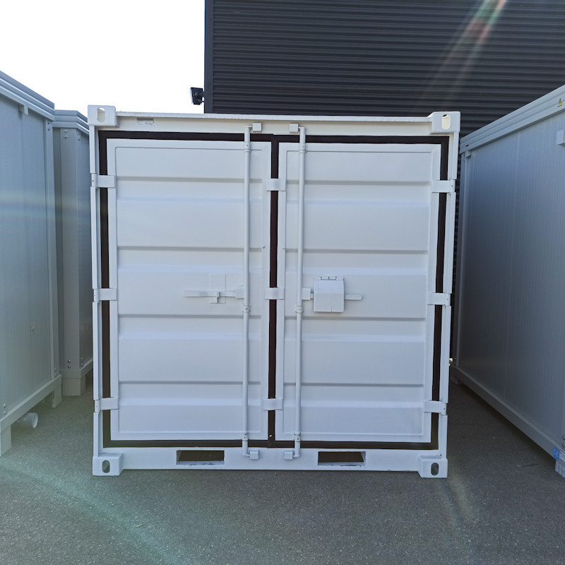 DIMENSÕES EXTERIORES Altura: 225 cm Largura: 220 cm Profundidade: 243,80 cm DIMENSÕES INTERIORES Altura: 202 cm Largura: 207 cm Profundidade: 223,80 cm Os nossos contentores de armazenamento permitem responder às necessidades de armazenamento em estaleiros, armazéns, depósitos exteriores, terrenos agrícolas ou em casa. Trata-se de contentores de armazenamento NOVOS, saídos da fábrica e não de contentores marítimos de «primeira viagem» que já navegaram. O nosso contentor de armazenamento de 8 pés tem uma estrutura feita de perfis de aço com 3 mm de espessura, totalmente soldados. As paredes e o teto são de chapa laminada com 1,5 mm de espessura e o piso é de madeira maciça com 25 mm de espessura, com tratamento anti-humidade. Está equipado com uma aba de proteção para o cadeado. A manipulação é possível com lingas ou ganchos de elevação graças às 4 tomadas no telhado, ou através de uma empilhadeira graças à passagem de garfos na base. Esta passagem de garfos está localizada na fachada, com um entreeixo de 90 cm. ESTRUTURA Material: Perfis de aço totalmente soldados e lacados Cor: Branco RAL 9010 Espessura: 3 mm Manuseamento: 4 pontos de elevação no teto. Base com encaixes para empilhadores equipadas com garfos longos (250 cm). PAREDES E TECTO Material: Chapa de aço laminado lacado branco RAL 9010 Espessura: 1,5 mm Ventilação: 4 entradas de ar PORTAS Material: Aço laminado lacado branco RAL 9010 Localização: Ao longo da largura Portas: 2 Vedação: Vedação de borracha preta Segurança: Tampa de proteção para cadeado PISO Material: Madeira maciça com tratamento resistente à humidade Espessura: 25 mm Capacidade de carga: 700 kg/m² MOVIMENTAÇÃO/ELEVAÇÃO Por empilhador: Espaçamento de 90 cm entre centros ao longo do comprimento Por grua: 4 pontos de acesso no teto para ganchos ou lingas de elevação Peso em vazio: 670 kg CAPACIDADE Carga: 5300 kg Volume: 8,5 m² Opcionais Instalação elétrica (1 interruptor + 1 lâmpada LED + 2 tomadas elétricas, com quadro elétrico e caixa de derivação) Piso de aço Cores específicas (de acordo com a tabela de cores RAL) Cadeado