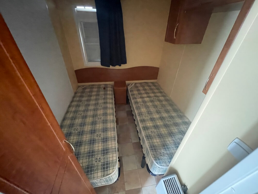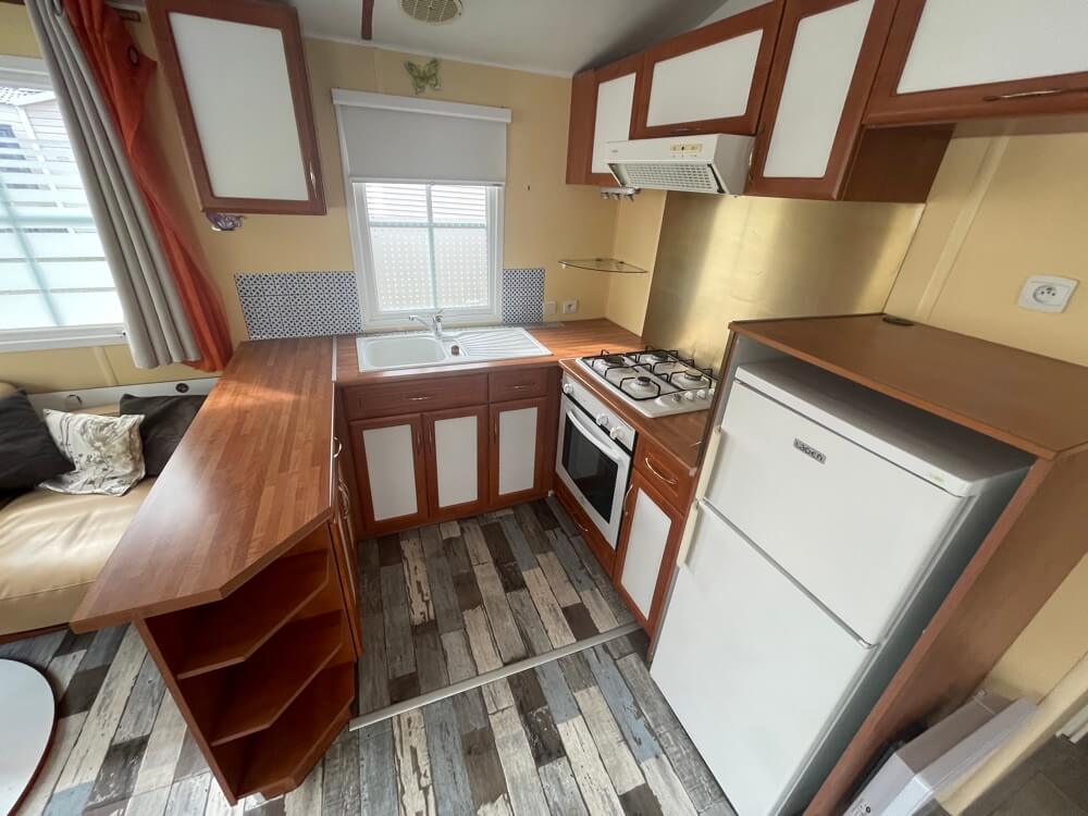 DIMENSÕES Comprimento x Largura: 8,6×4 m ESTRUTURA Número de quartos: 2 quartos Número de WC/chuveiros: 1 WC, 1 chuveiro Revestimento: 2- PVC Isolamento: 4 estações EQUIPAMENTOS Aquecimento elétrico Aquecedor de água a gás Forno Placa de cozinha a gás PANORÂMICAS Sala panorâmica PONTOS FORTES Persianas nas quartos
