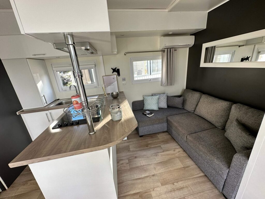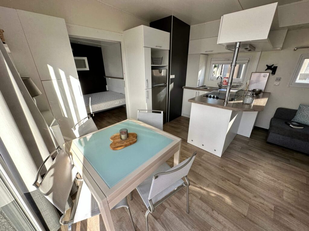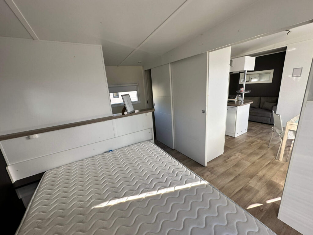 2 QUARTOS 2012 LARGURA: 4,30M COMPRIMENTO: 10M ÁREA: 40M² TAOS: A NOVA VISÃO DA VIDA MÓVEL! A Louisiana batizou esta linha de produtos "Taos" em homenagem à vila perto de Santa Fé, cuja arquitetura indígena, com o seu design modular e inovador, se integra perfeitamente no ambiente. Taos incorpora uma visão mais arquitetónica da vida móvel. Este modelo Louisiana usado tem revestimento exterior em vinil e madeira natural! Os seus dois quartos com casas de banho privativas oferecem um conforto excepcional. A suite principal inclui um toucador e amplo espaço para armazenamento. Portas de correr e uma porta de vidro deslizante embutida inundam a sala de estar de luz natural. O quarto principal possui uma porta de vidro que proporciona acesso direto ao exterior. Ar condicionado Convectores Quarto infantil: 3 camas Suite principal com banheiro privativo 2 casas de banho/lavabos Portas de correr entre os quartos e as casas de banho Vaso sanitário suspenso Mesa de jantar móvel com 6 cadeiras Frigorífico/congelador grande Lava-louças Suporte para TV Exaustor Fogão elétrico de 4 bocas