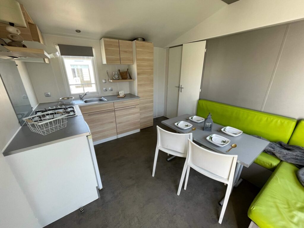 2 QUARTOS LARGURA: 4M COMPRIMENTO: 7,50M ÁREA: 30M² Esta casa móvel, fabricada em França pela O'HARA, modelo 734, é uma oportunidade imperdível: Muito bem conservada, dispõe de uma sala de estar central, cozinha totalmente equipada, casa de banho, WC, suite e um segundo quarto com três camas. Financiamento disponível através do nosso parceiro. Transporte, ligação à rede eléctrica e nivelamento do terreno disponíveis. Também podemos instalar um deck de madeira. Entre em contacto connosco diretamente. Fogão a gás com 4 bocas Geladeira Exaustor Casa de banho e lavabo Ampla sala de estar central Sala de jantar iluminada Suíte espaçosa Amplo espaço de armazenamento