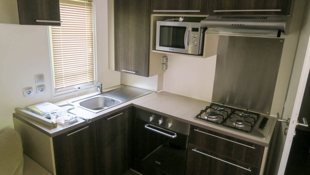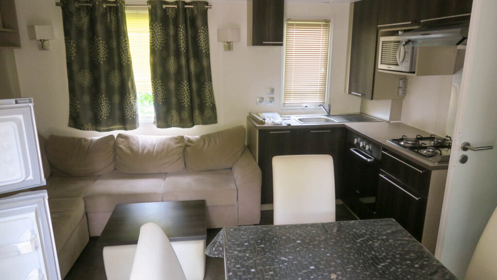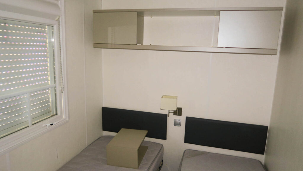 3 QUARTOS 2011 LARGURA: 4M COMPRIMENTO: 8,90M Esta casa móvel residencial O'HARA, modelo O'TINY 860, é compacta e ideal para famílias. Perfeita para férias com a família ou amigos. Os seus três quartos espaçosos e a sala de estar luminosa convidam ao relaxamento durante todo o ano, graças às suas diversas comodidades. O seu espaço otimizado, com cozinha funcional, zona de refeições e sofá-cama de canto, permite acomodar até duas pessoas adicionais. Quartos Banheiro amplo Sofá-cama de canto Acomoda 6/8 pessoas WC separado Aquecedores de convecção em todos os quartos Estores em todos os quartos Forno a gás de encastrar Micro-ondas Ligação para máquina de lavar roupa na casa de banho
