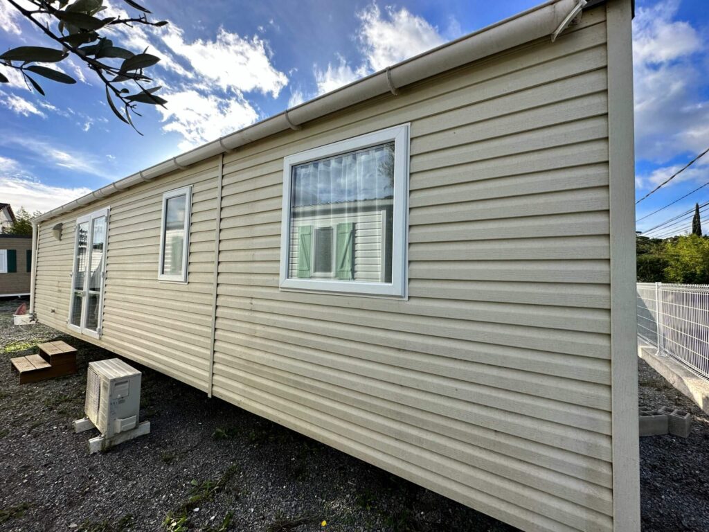 3 QUARTOS 2012 LARGURA: 4M COMPRIMENTO: 10,60M ÁREA: 42M² MAGNÍFICA CASA MÓVEL BORA BORA USADA DA RAPID HOME. Esta casa móvel de 42m² oferece todo o conforto necessário. A sua espaçosa sala de estar possui ar condicionado. A cozinha totalmente equipada abre para a sala de estar/jantar. A cozinha inclui um frigorífico/congelador grande, um fogão a gás de 4 bicos, um exaustor e um forno encastrado. As melhores características deste modelo são o seu amplo espaço de arrumação e a suite principal com closet. Cozinha equipada (forno, exaustor, frigorífico/congelador grande) Máquina de lavar roupa Ar-condicionado Sofá de canto grande e convertível Mesa de jantar amovível com 4 cadeiras 2 quartos com 2 camas individuais cada Suite principal com closet Amplo espaço de armazenamento Acabamento residencial Isolamento reforçado Casa móvel ampla com mais de 40m²