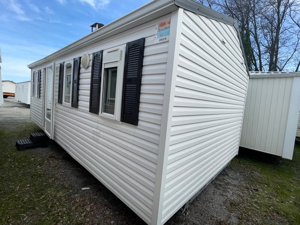 DIMENSÕES Comprimento x Largura: 7,4 x 4 m ESTRUTURA Nº de quartos: 2 quartos Número de casas de banho/duche: 1 casa de banho, 1 chuveiro Revestimento: PVC de 2 camadas Isolamento: 4 estações EQUIPAMENTOS Aquecimento elétrico Aquecedor de água a gás Fogão a gás Persianas panorâmicas Sala de estar central CARACTERÍSTICAS PRINCIPAIS Estores de enrolar nos quartos